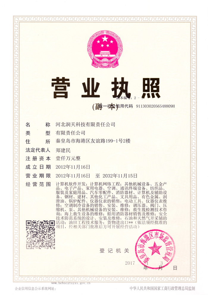 河北潤天科技有限責(zé)任公司始于2000年成立,公司以工業(yè)、應(yīng)急救援產(chǎn)品貿(mào)易為基礎(chǔ),主營安全設(shè)備、安全裝備、儀器儀表的銷售、維修及檢驗檢測;公司通過了CMA、CNAS實驗室認證及特種設(shè)備檢驗檢測機構(gòu)核準(zhǔn)以...[更多]